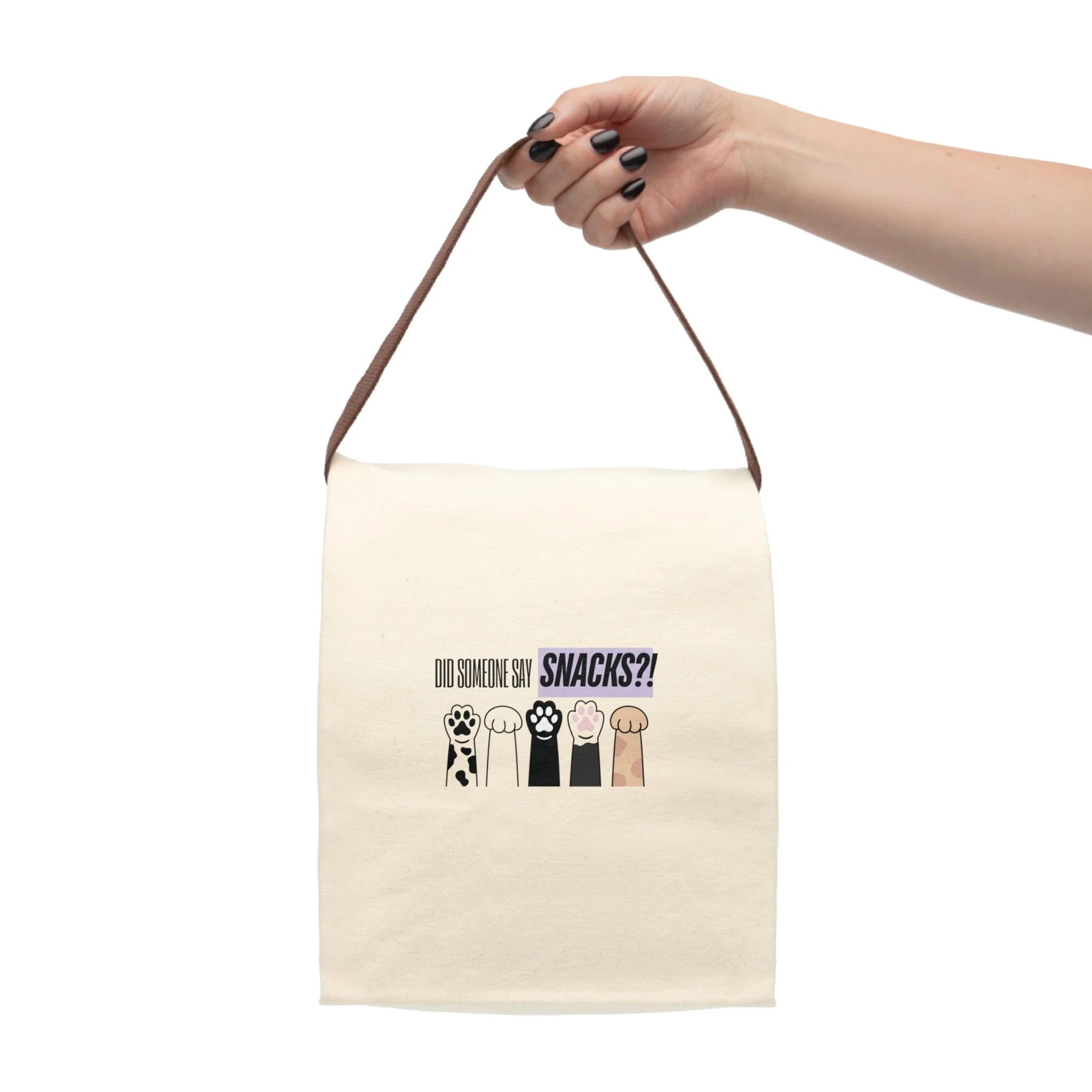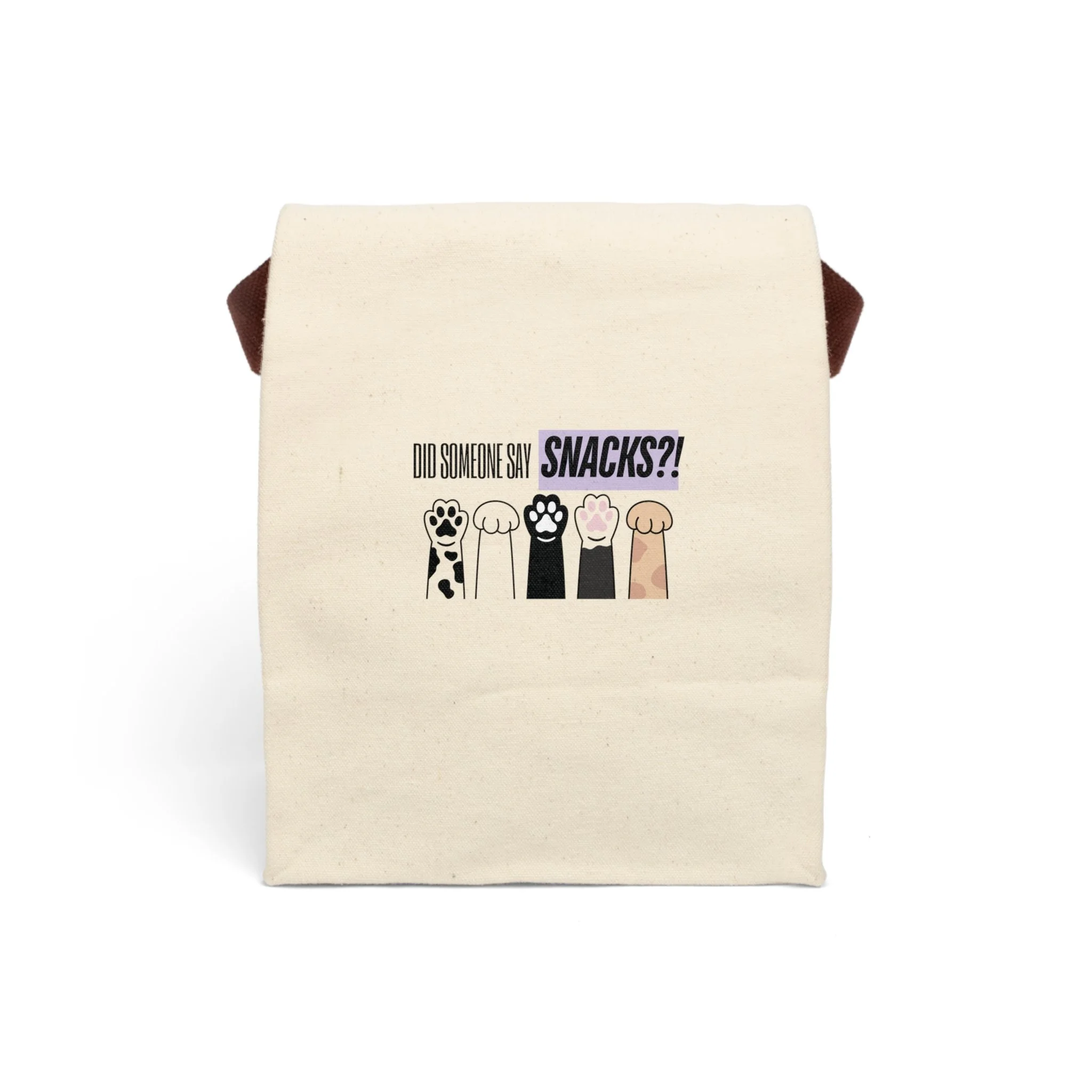 Canvas Lunch Bag — "Did Someone Say Snacks?" with 5 Raised Dog Paws